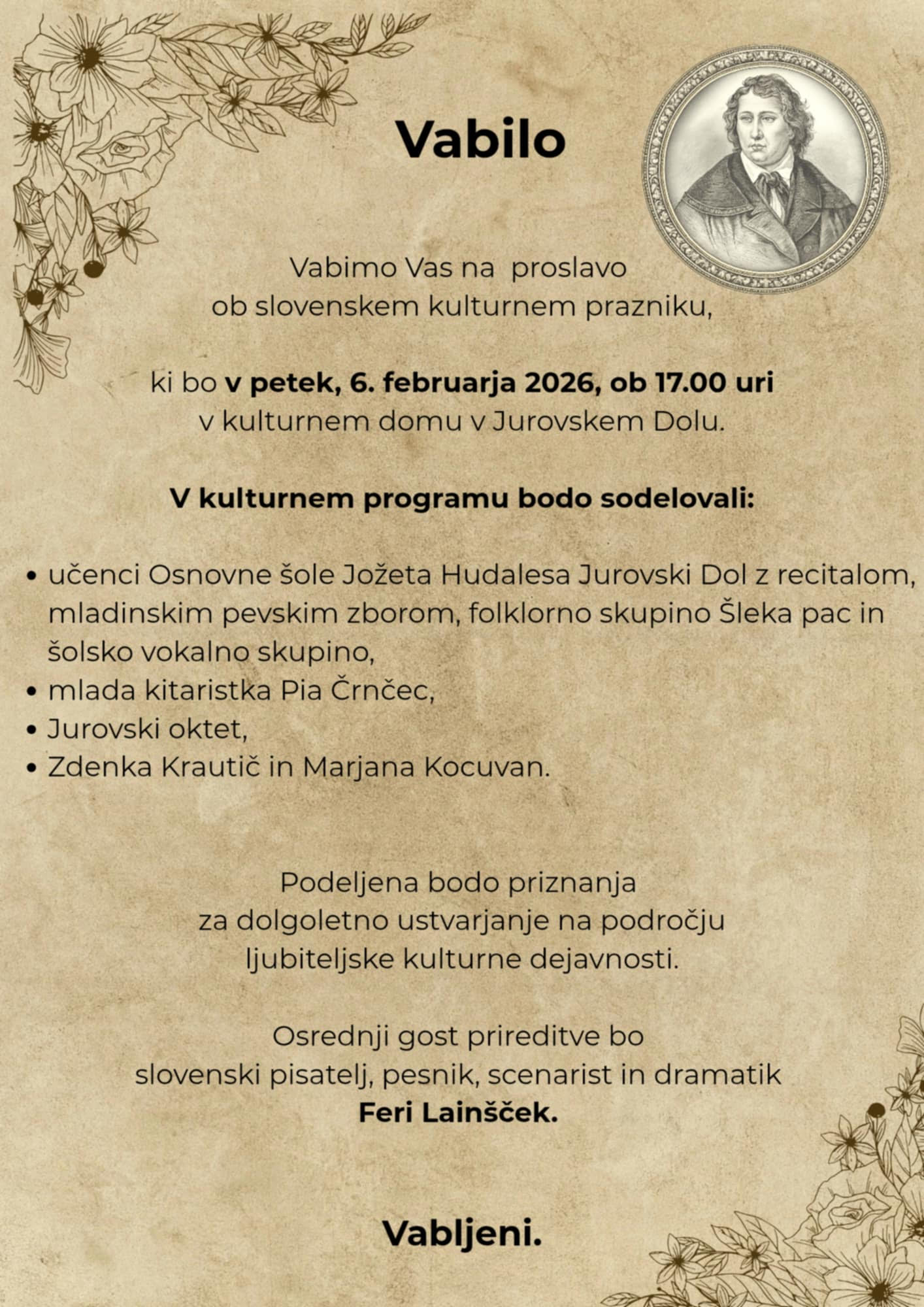 Vabilo - PROSLAVA KULTURNI PRAZNIK 6.2.2026