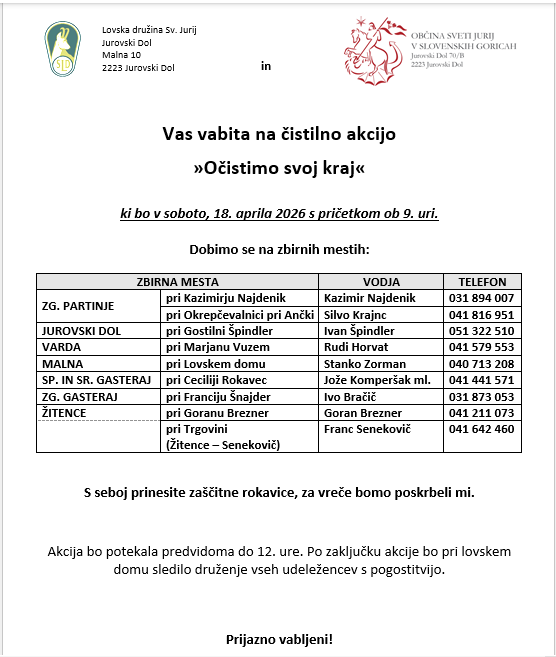 VABLJENI NA ČISTILNO AKCIJO "OČISTIMO SVOJ KRAJ"