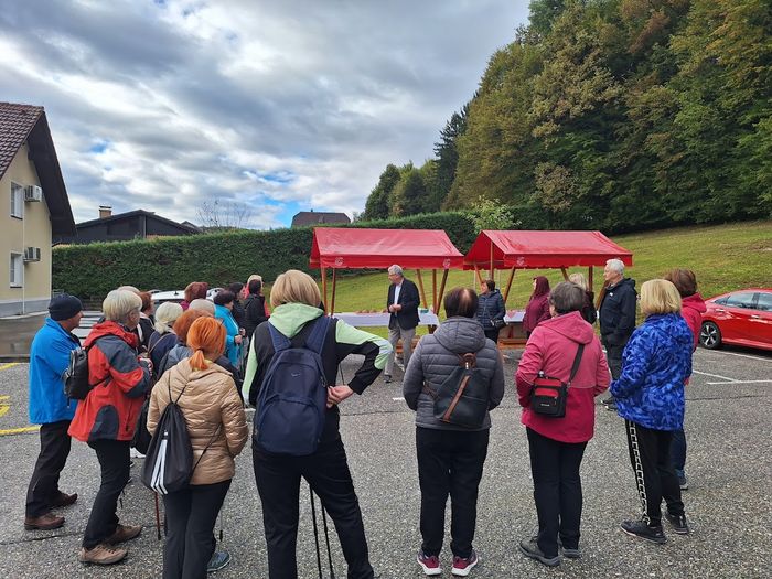 Prisotni so v nadaljevanju pripeli roza pentljo, ki je mednarodni simbol boja proti raku dojk in na ta način pokazali podporo vsem ženskam, ki se soočajo z boleznijo ter hkrati spomnili sebe in druge, kako pomembna je skrb za zdravje. Kot pomoč pri preprečevanju raka se veliko omenja tudi telesna aktivnost, zato so se zbrani odpravili na pohod po občini, ki je tokrat potekal v organizaciji Društva upokojencev Sv. Jurij v Slov. goricah, katerim se obenem tudi zahvaljujemo za številčno udeležbo.