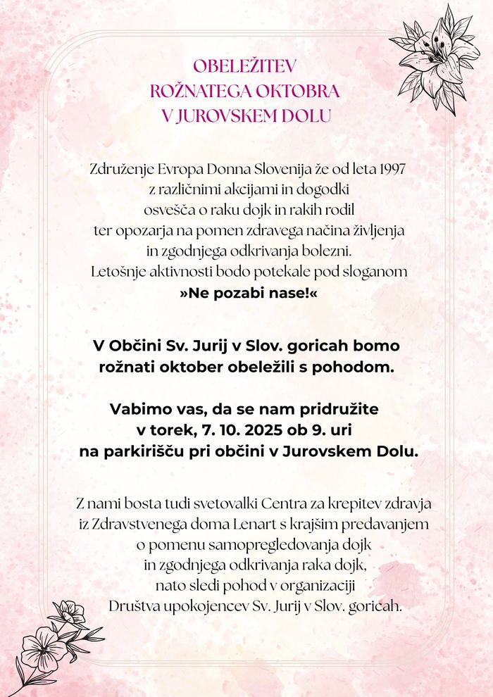VABILO NA OBELEŽITEV ROŽNATEGA OKTOBRA V JUROVSKEM DOLU